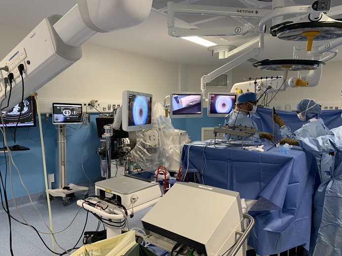 Please take a wide picture of the OR. The goal is to see the relationship between the patient location and the ethernet drop & camera tower. A wide view is best, including the ethernet connection area, camera tower and patient area if possible.