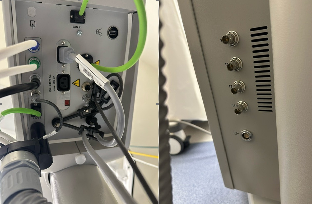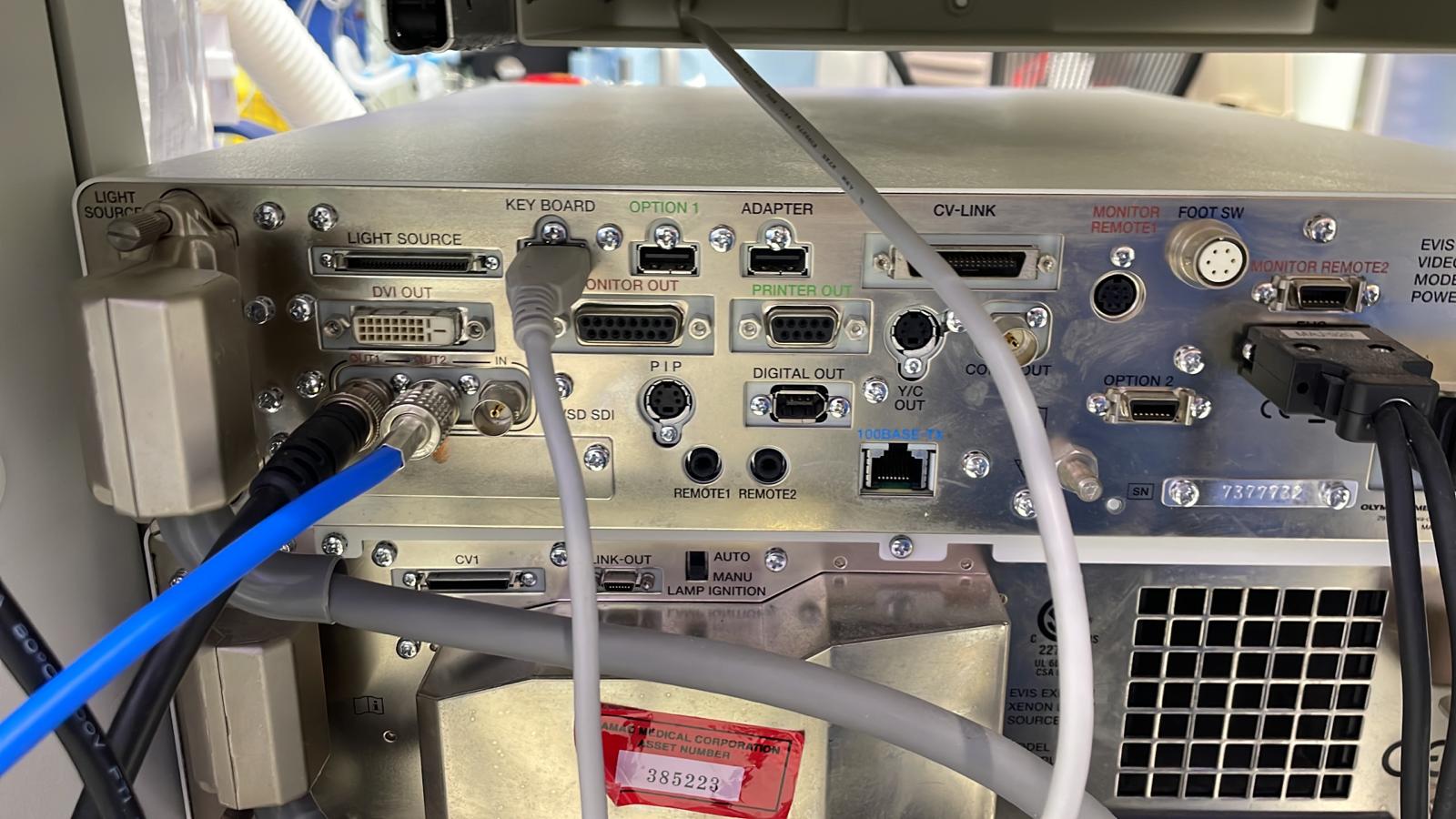 Please take a picture of the BACK of the camera tower (Stryker, Storz, Olympus, daVinci, etc). We need to see the connector types in a detailed shot that covers the different ports.
